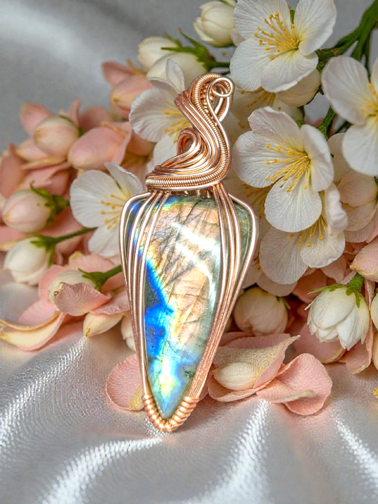 This pendant was born from that quiet interval. labradorite holds colour way water holds reflections, not fixed, but conditional. Blue opens like sky between branches; gold and orange arrive like late afternoon sun striking bark and dust in the same breath. It withholds until movement invites it. One must allow light to negotiate with surface. In this way it resembles experience itself: meaning appears not through force, but through attention.